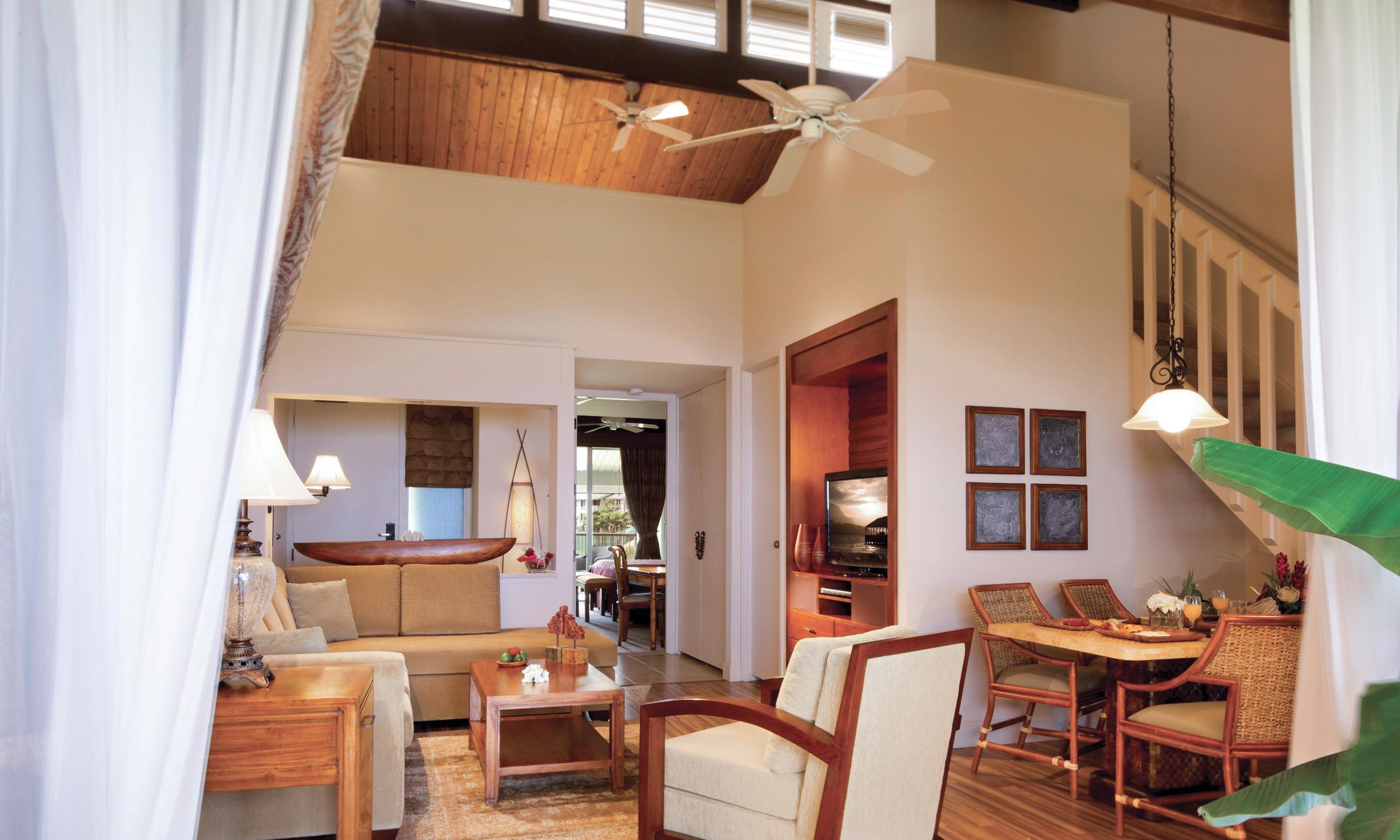 Perched on the hills of Kauai that overlook the island’s majestic north shore, this resort is a secluded getaway in the upscale Princeville community. Explore its 22-acre tropical garden by bike, hit the tennis courts, or lounge with a book by the swimming pool before watching a spectacular sunset.